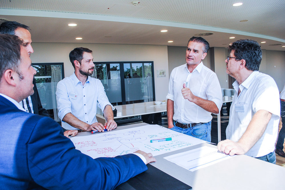 Die Workshops wurden mit wechselnden Teilnehmern durchgeführt, um zum einen den Austausch der Teilnehmer untereinander zu ermöglichen und ein Verständnis dafür zu bekommen, welche Potentiale der Digitale Zwilling bietet.